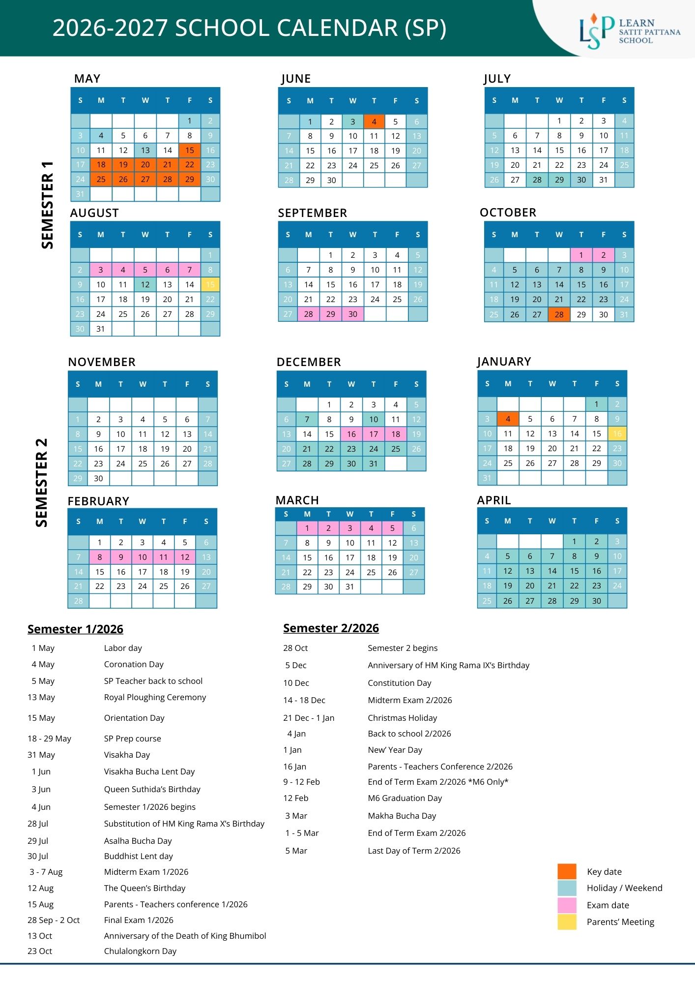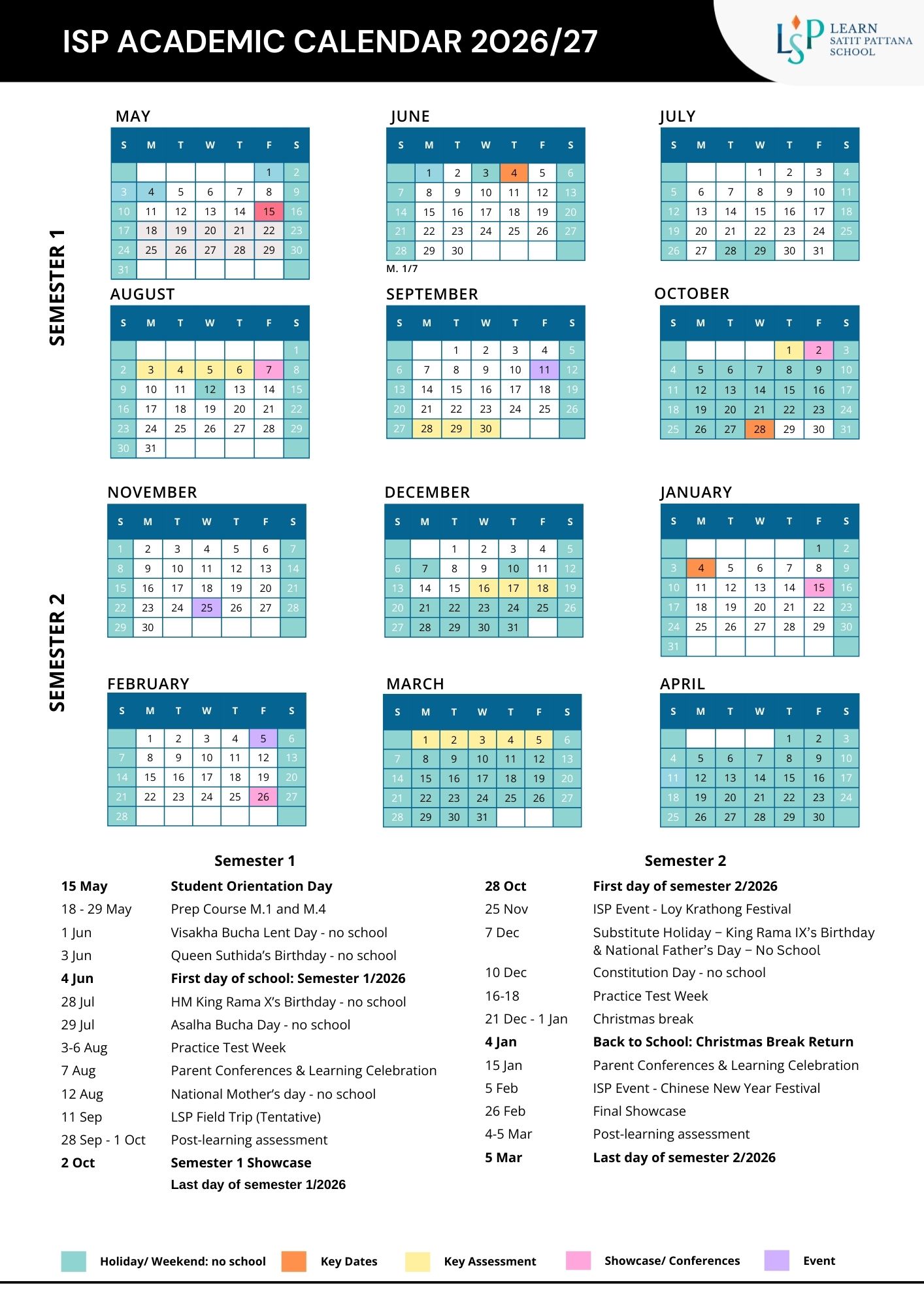 วันสำคัญทางการศึกษาและกำหนดการตลอดปีการศึกษา