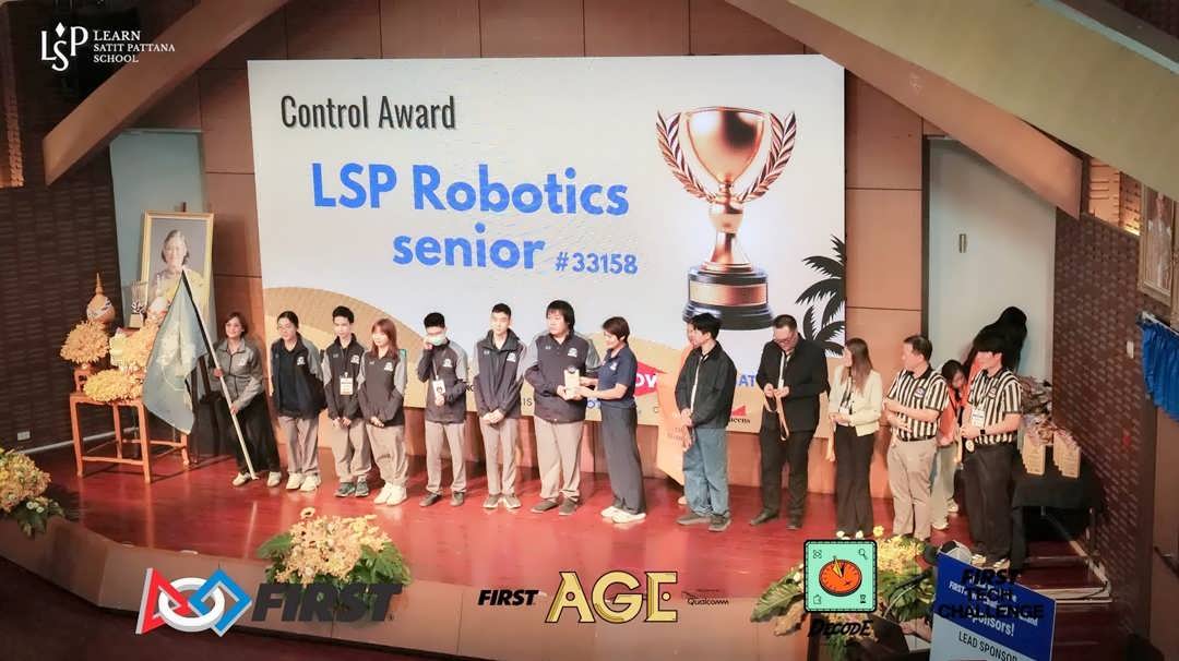 ทีม LSP Robotics Senior ได้รับรางวัล Control Award สะท้อนความเป็นเลิศด้านการออกแบบระบบควบคุม การเขียนโปรแกรมและการประยุกต์ใช้หลักวิศวกรรมอย่างเป็นระบบ ตลอดการแข่งขัน ทั้งสองทีมแสดงศักยภาพด้านการเตรียมความพร้อม การทำงานเป็นทีม และการคิดเชิงวิศวกรรม ส่งผลให้หุ่นยนต์ทำผลงานได้อย่างสม่ำเสมอในทุกช่วงการแข่งขัน