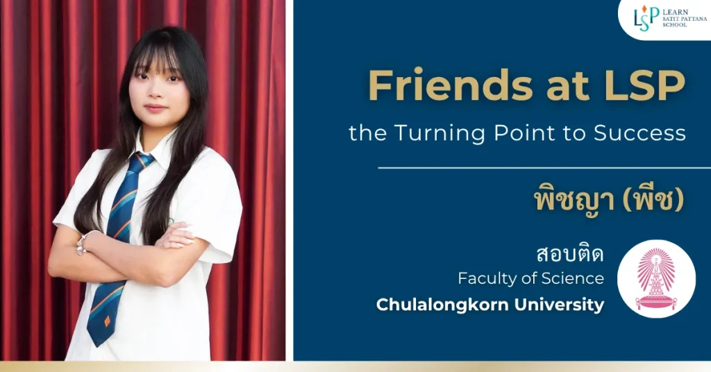 Congratulations to Peach, LSP05, on being admitted to the Faculty of Science, Applied Chemistry (International Program) at Chulalongkorn University