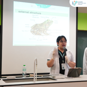 ในวิชา Medical Lab and Research รูปแบบการเรียนที่คุณครูและนักเรียนเรียนรู้ปฏิบัติการทางการแพทย์และปฏิบัติงานทางวิจัยร่วมกันอย่างเจาะลึก สัปดาห์นี้นักเรียนชั้นมัธยมศึกษาปีที่ 5 ลงมือปฏิบัติการผ่ากบ ศึกษาโครงสร้างอวัยวะของสัตว์ ซึ่งช่วยให้นักเรียนฝึกคิดอย่างเป็นระบบ ตั้งคำถามอย่างนักวิทยาศาสตร์และเข้าใจกลไกการทำงานของร่างกายมากขึ้น